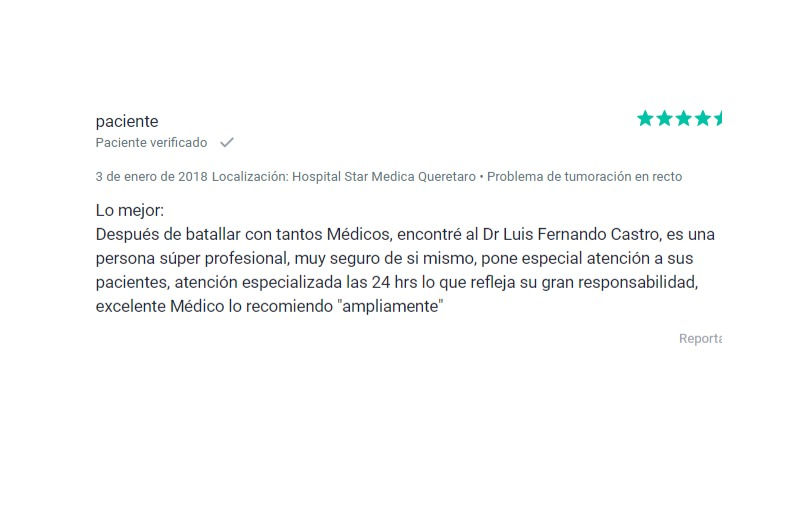 Estamos comprometidos con nuestros pacientes y tenemos el firme propósito de seguir mejorando diariamente. Sus opiniones son muy importantes para seguir creciendo y continuar posicionados como el Centro Coloproctológico más actualizado e importante del Bajío.